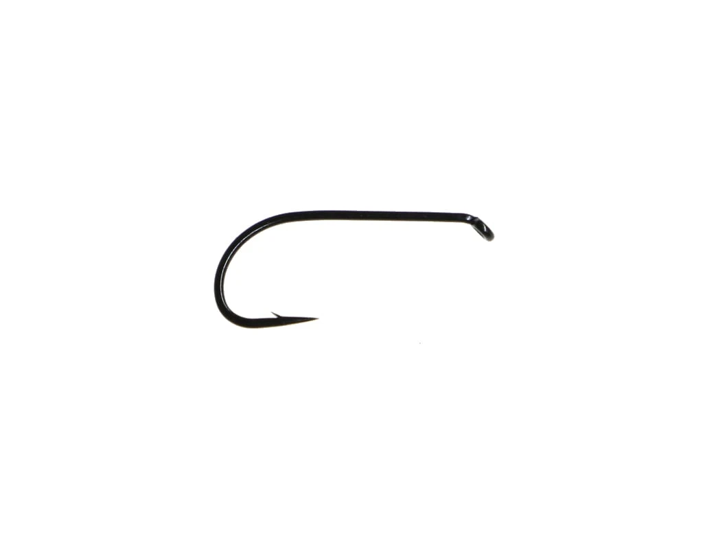 Dry fly, down eye, 1 extra fine, wide gape, forged, black. Designed for the ‘quick take’ strikes of Japanese native trout, now the the standard hook for tying parachute style patterns. The point has moved back slightly for more secure hooking.