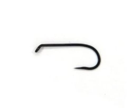 A nice black hook from Tiemco, 1xf, 1x wide, with a semi dropped pointBarbless
