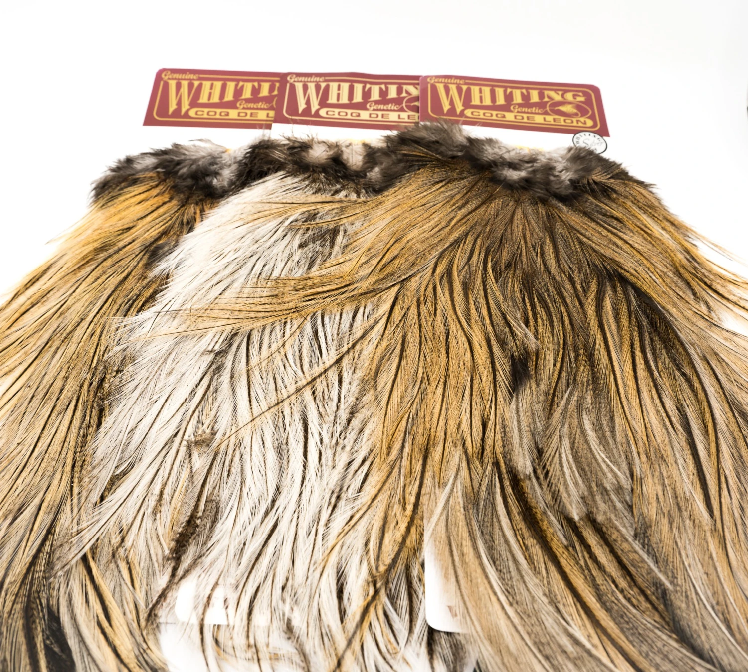 Beautiful quality Coq De Leon Silver Grade Rooster Saddles from Whiting Farms. Excellent natural tailing fibres from the center top feathers, sometimes called the “spade hackles”. Also, provides large size wet and dry fly saddle hackle for Wulff and other large flies.